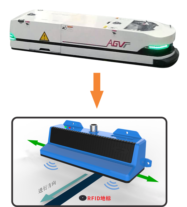 AGV磁条导航和RFID站点定位,过程控制,站点定位等。