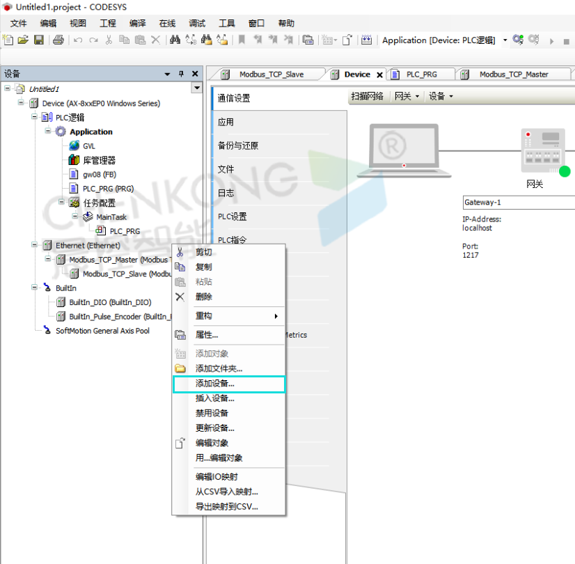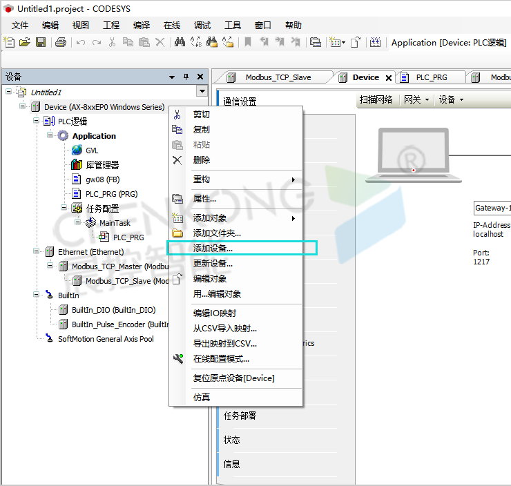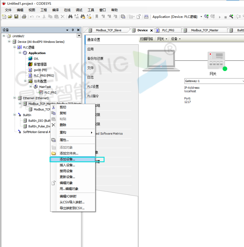 晨控CK-GW08系列网关控制器与CODESYS软件MODBUSTCP通讯手册