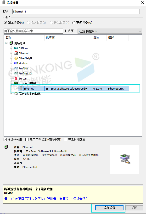 4、右键添加的Ethernet,选择添加设备。