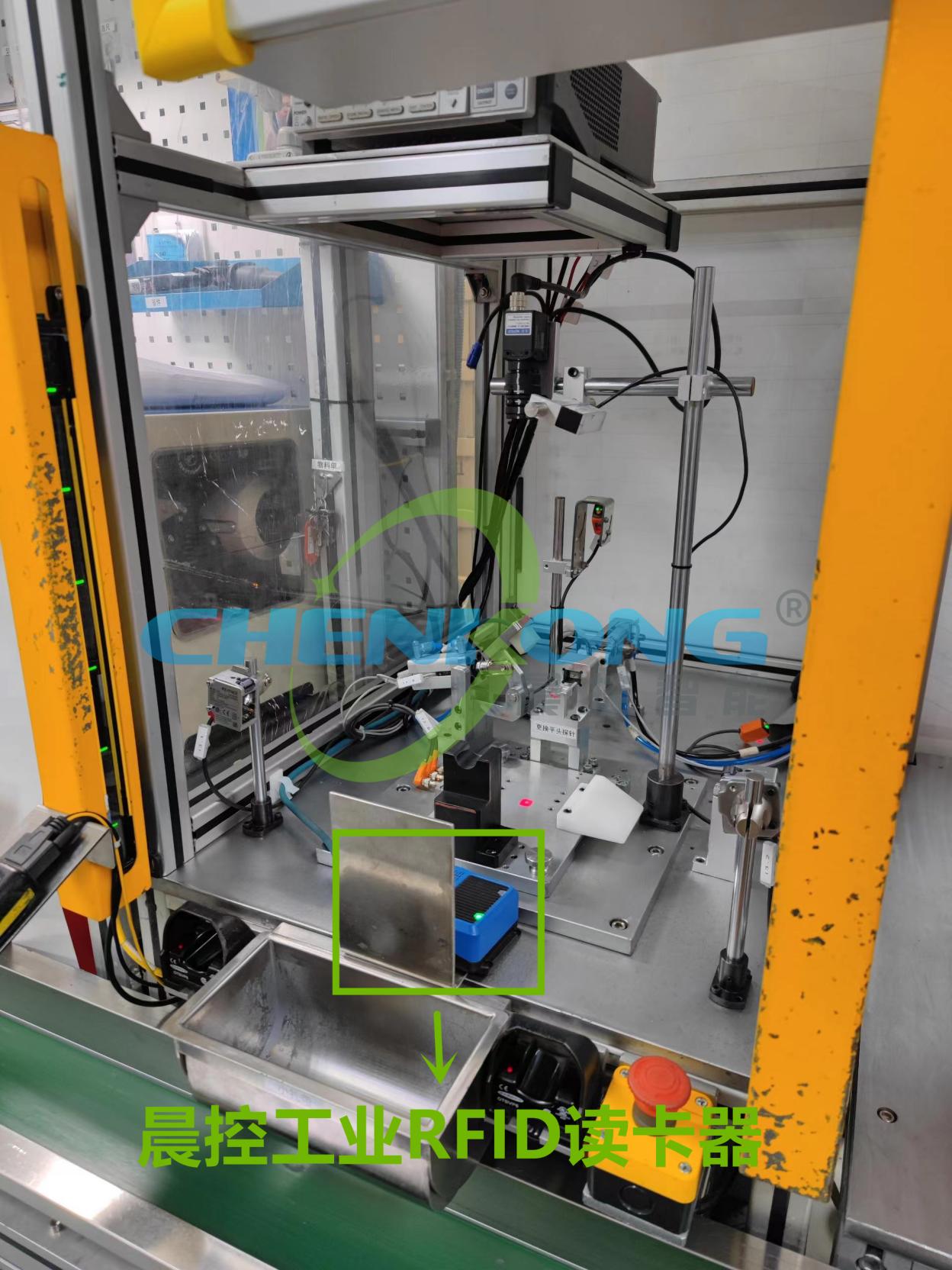 在工厂产线的各个工位处都安装了晨控智能的RFID。此时当有标签经过时,可全自动读取标签数据,并判定零部件的信息是否准确,同时无需停工,无论在托盘上或是容器中均不受限制。