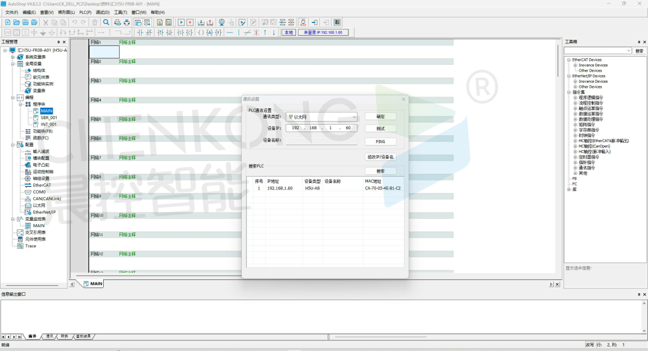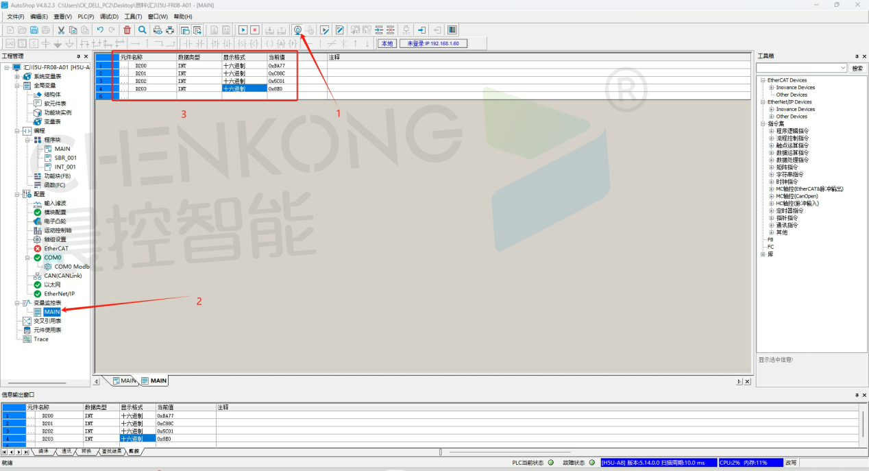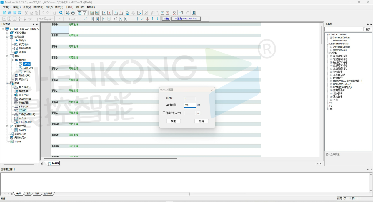 晨控工业rfid读卡器CK-FR08-A01与汇川H5U系列PLC通讯操作指南