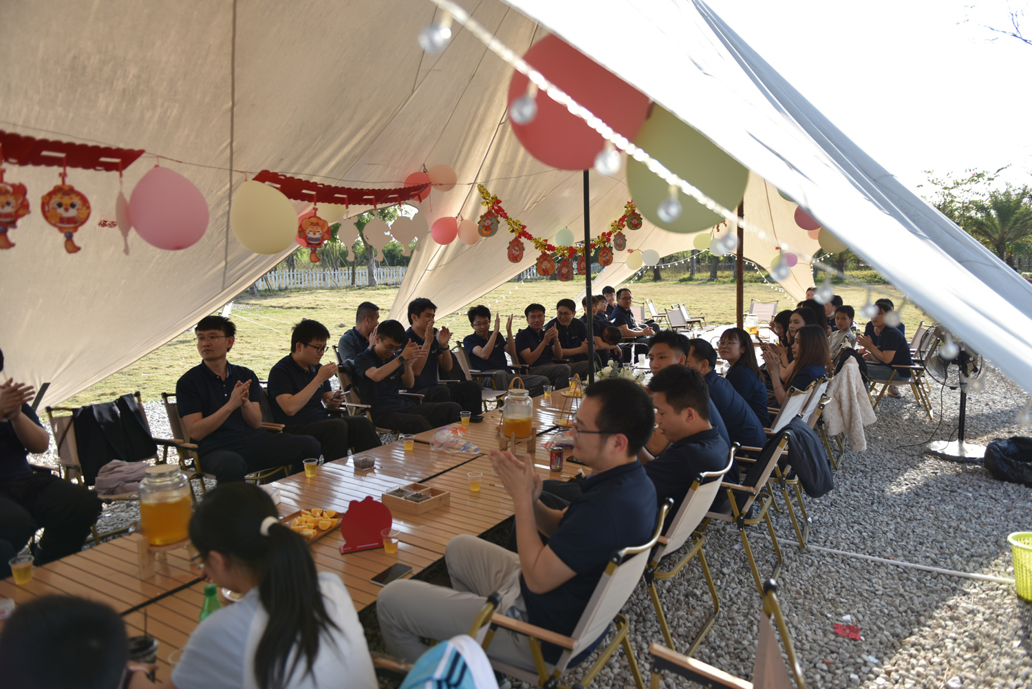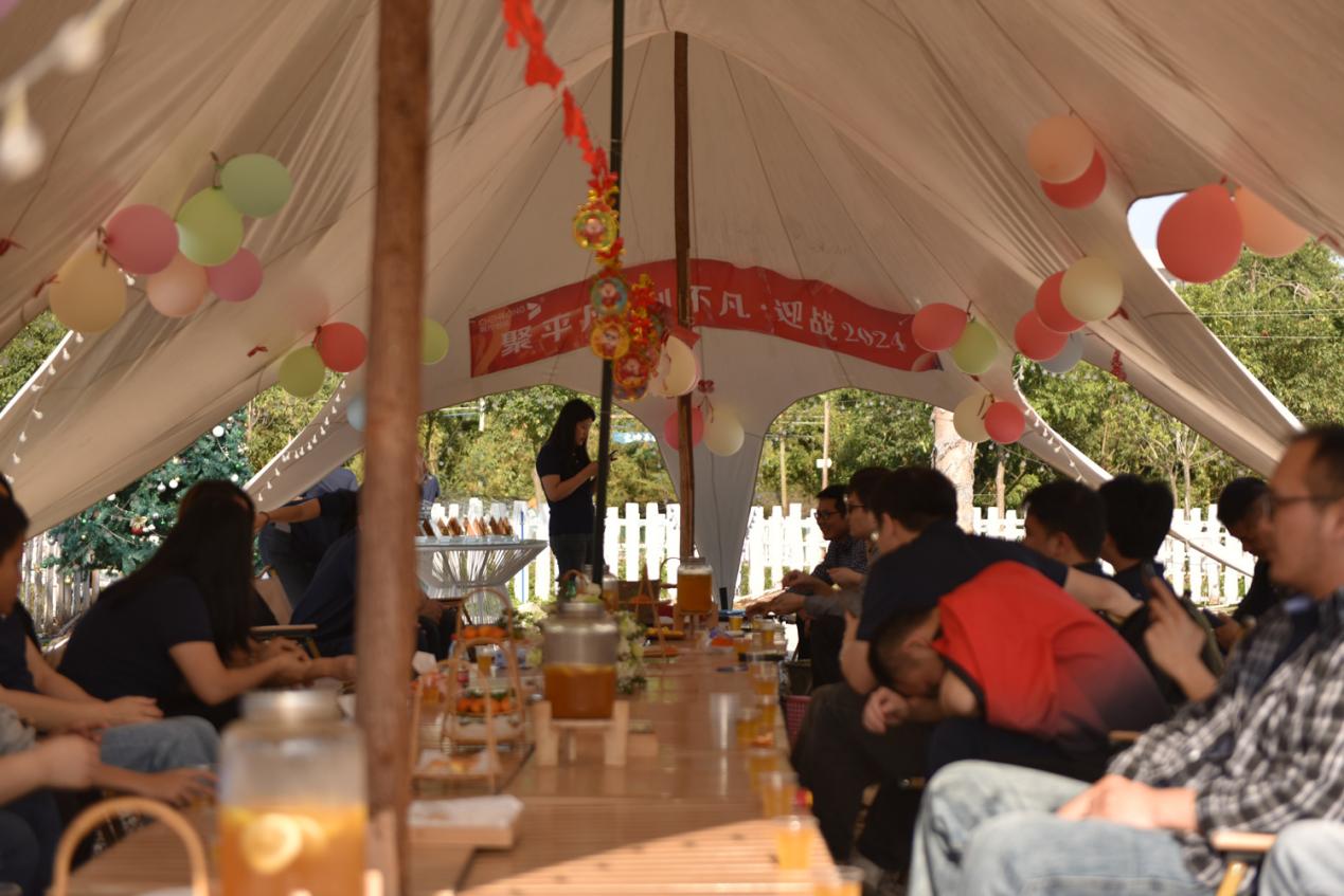 一年一度的公司年会在大家的期盼中如约而至,这是我们公司成员欢聚一堂,共同庆祝过去一年的成就与收获的时刻。我们将在这里回顾过去一年的点点滴滴,共同展望未来的美好蓝图。在这个充满欢声笑语的时刻,让我们一起感受公司的温暖与力量,共同迎接更加辉煌的明天!今年,我们的年会在户外营地举行,所有的员工都参加了这个活动。