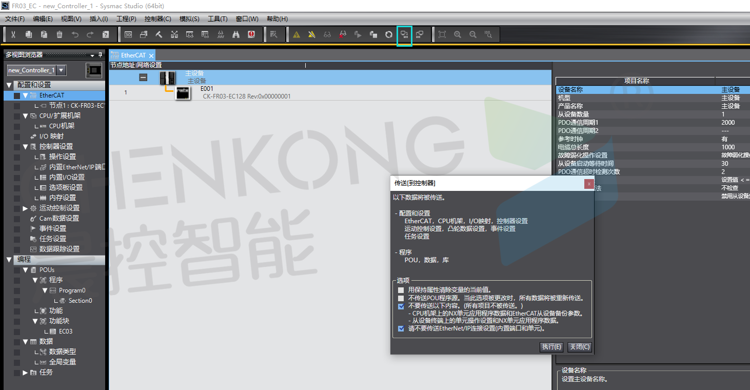 本期围绕着晨控CK-FR03-EC通过Ethercat协议与欧姆龙的PLC通讯组态问题: