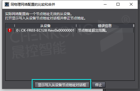 8、新设备可能会提示节点地址超出范围,需要点击显示写入从设备节点地址对话框(设置过的直接跳转到10步)
