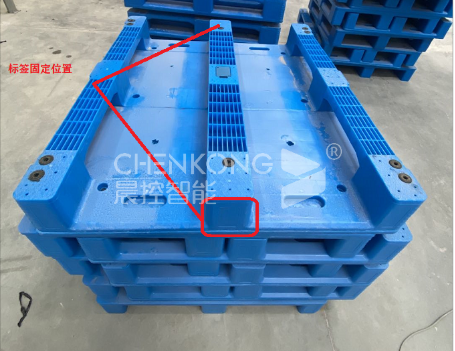 托盘标签安装:电子标签固定在托盘中间的腿上,托盘两边各固定一个。