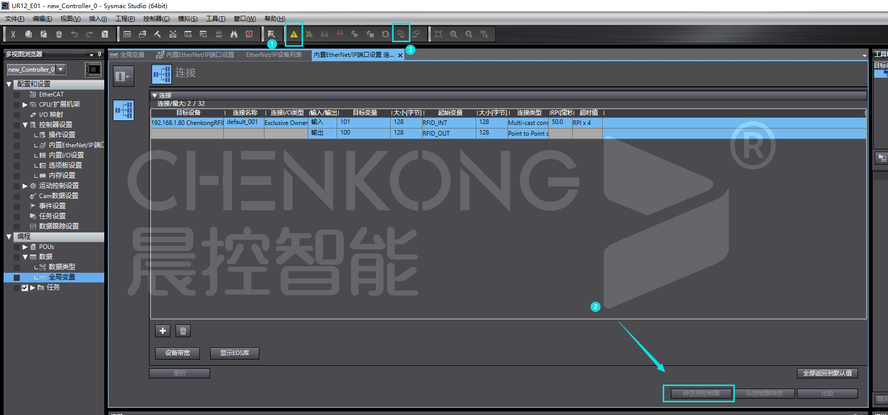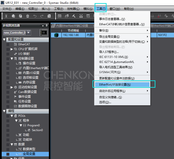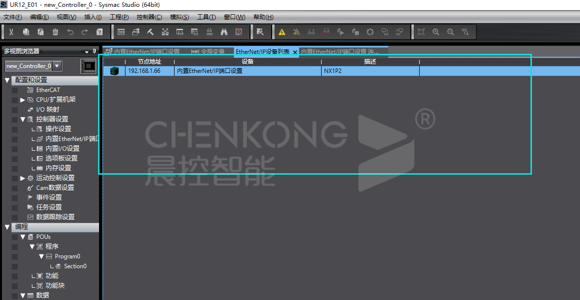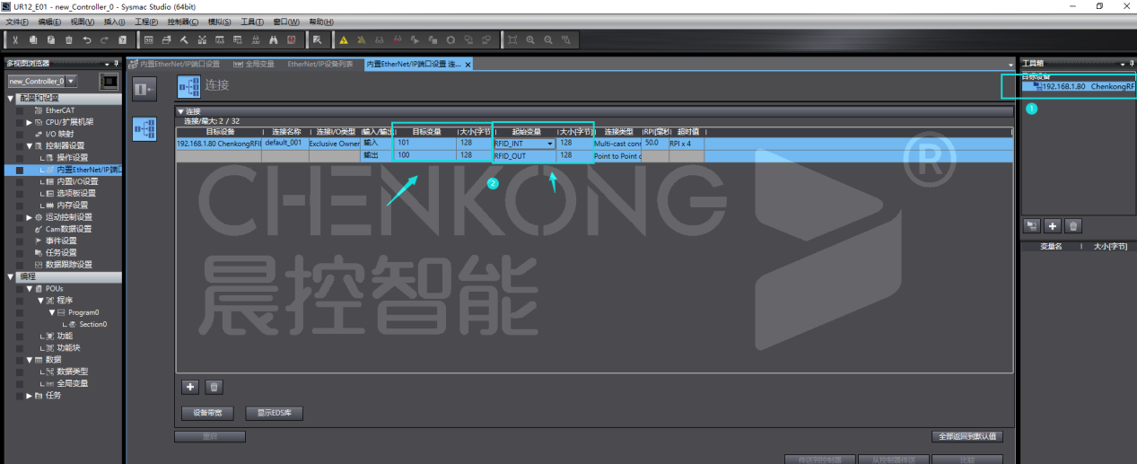 晨控工业rfid读写器CK-UR12-E01与欧姆龙NX/NJ系列EtherNet/IP通讯操作使用说明