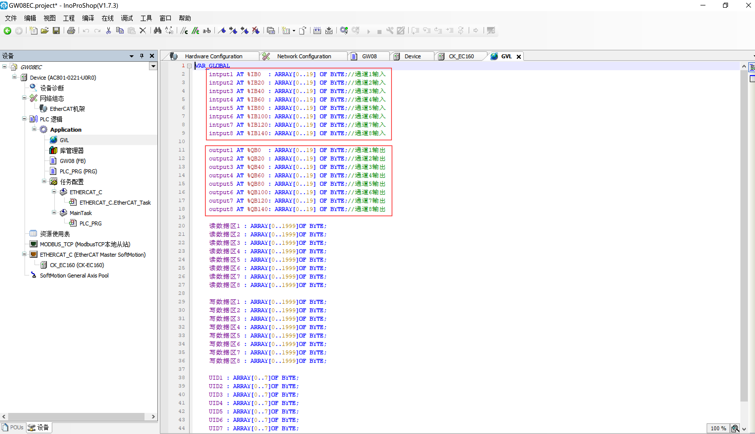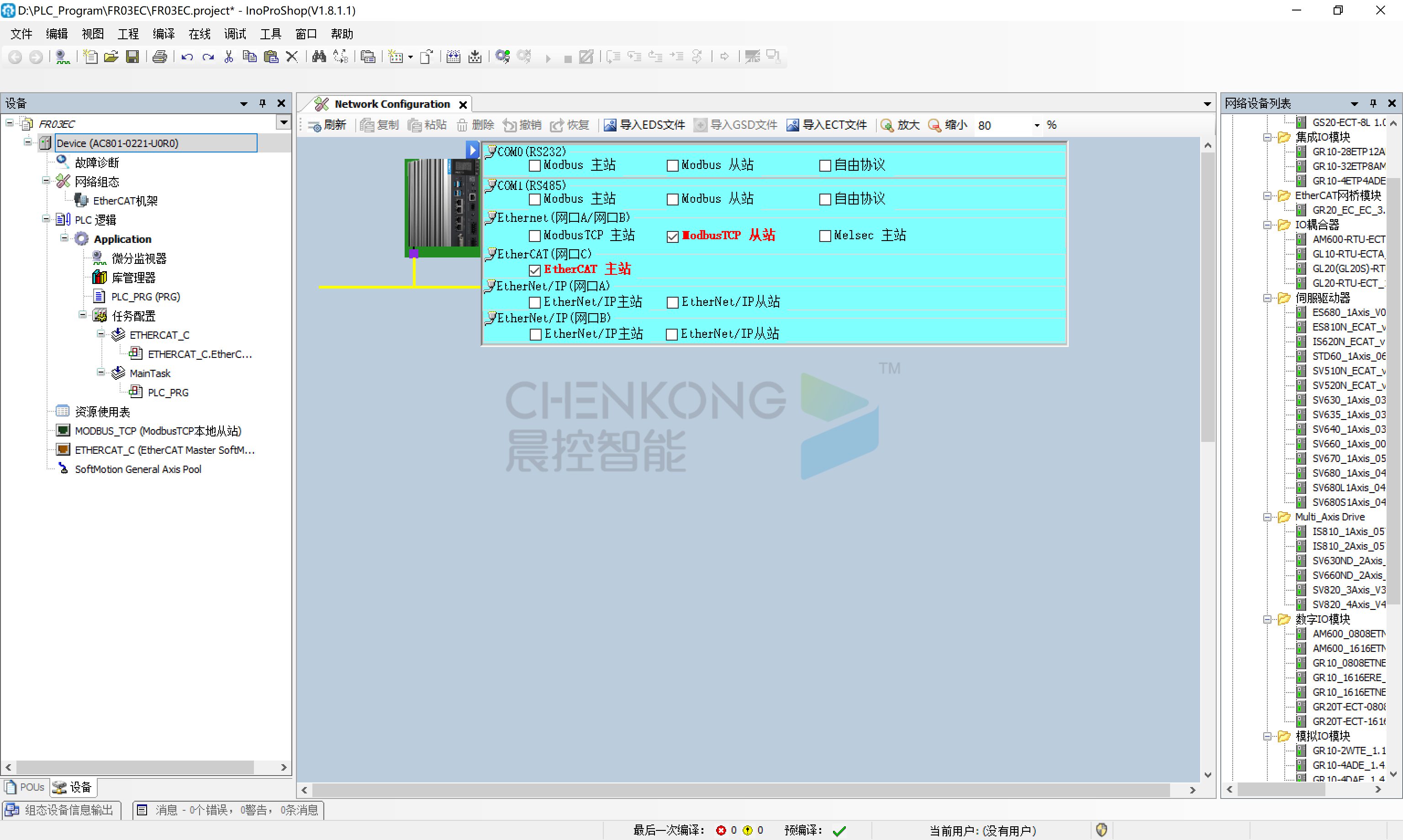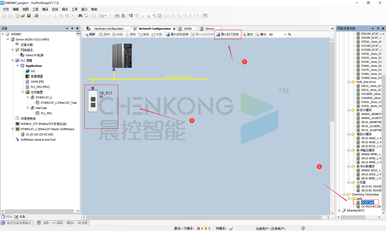 本期围绕着晨控CK-GW08-EC通过EtherCAT协议与汇川AC801系列PLC通讯组态问题: