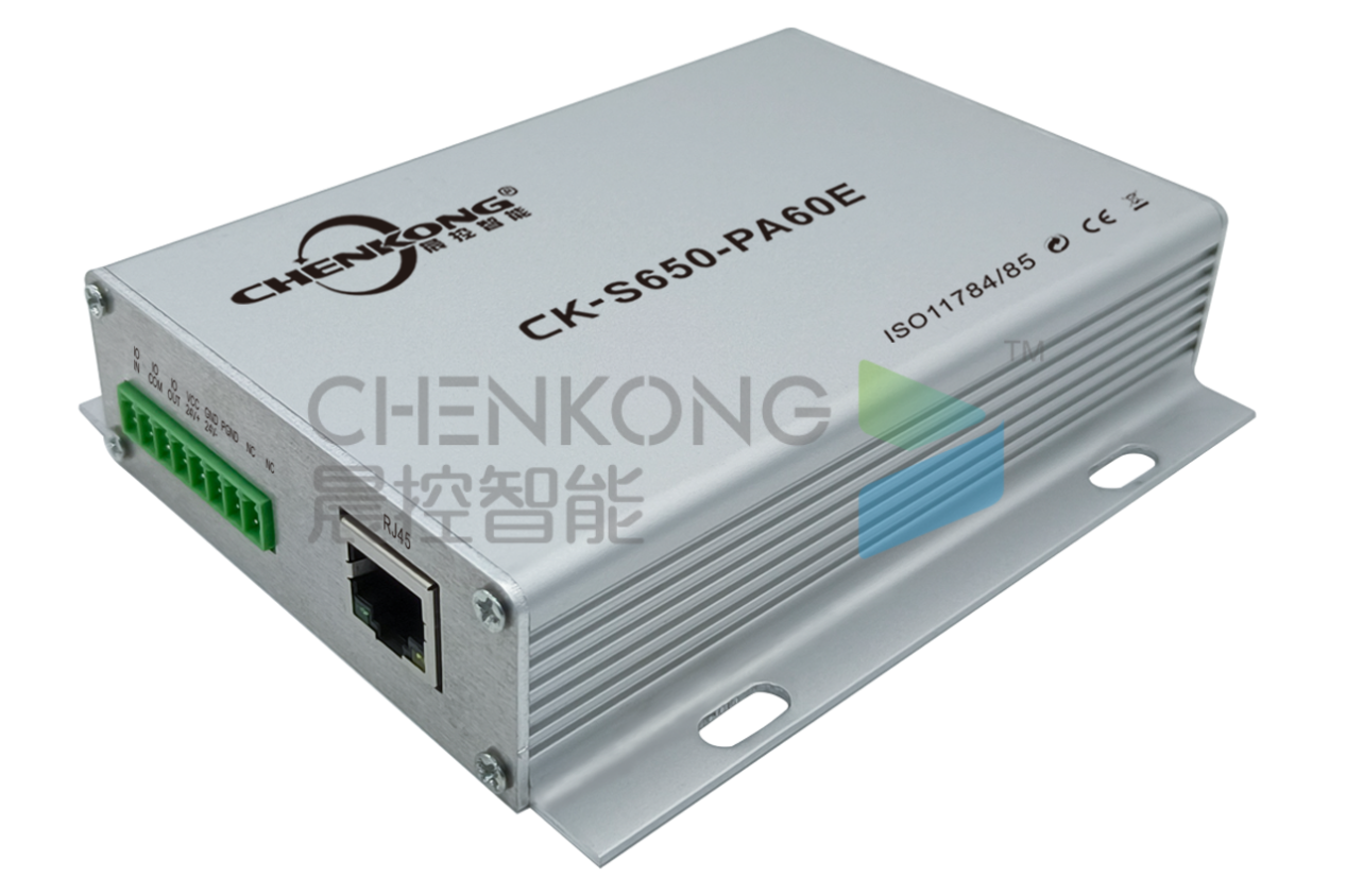CK-S650-PA60E是一款基于射频识别技术的低频RFID标签读卡器,读卡器工作频率134.2kHz。该读卡器支持标准工业半导体HSMS、Modbus TCP协议,同时还支持1和N协议,方便用户应用到半导体加工控制器或PLC等系统中。设备外置了三个模式开关选择器,方便用户直接设置工作模式、通信速率以及设备地址。读卡器内部集成了射频部分通信协议,用户只需通过以太网通信接口发送接收数据便可完成标签的读取操作,无需理解复杂的射频通信协议。