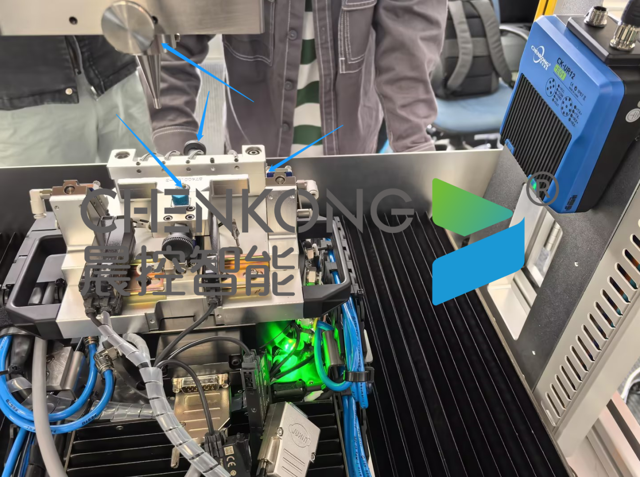 使用CK-UR12-E01在一侧,通过PLC触发指令读取可以同时读取全部标签数据,上传至系统。