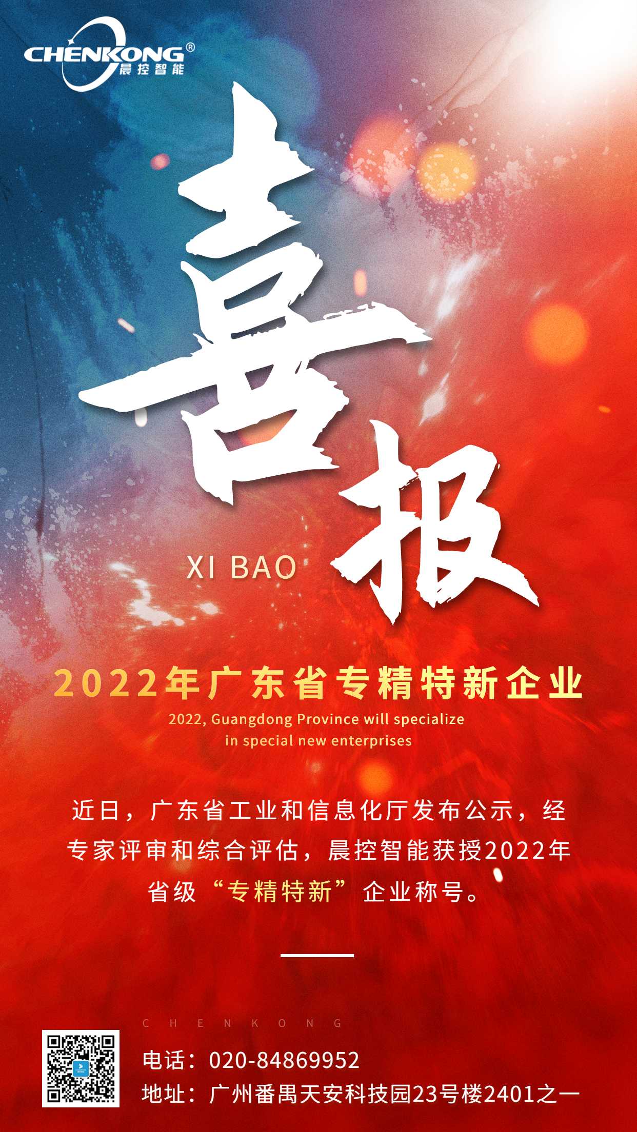 广州晨控智能技术有限公司凭借在工业RFID识别领域的专业产品服务、自主研发能力、创新能力等综合实力脱颖而出,被认定为2022年省级“专精特新”企业。