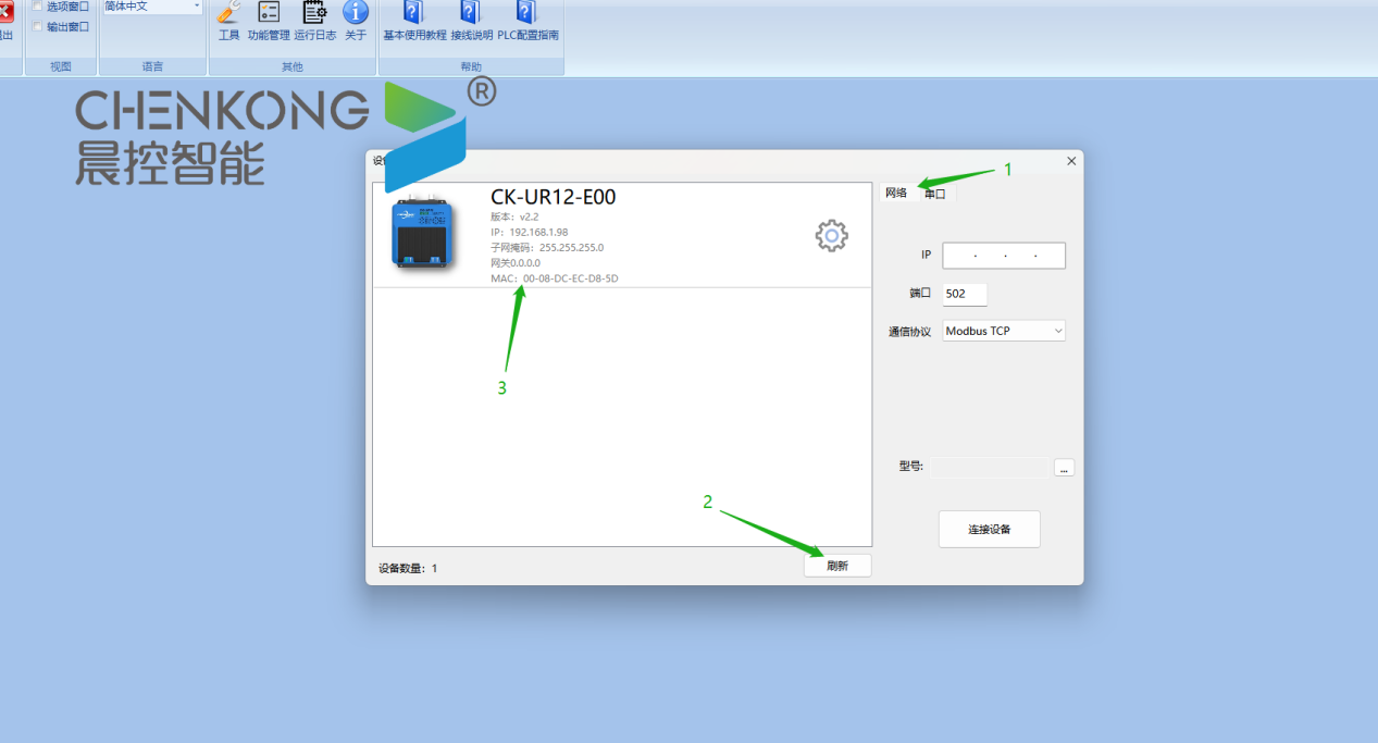 注:如果刷新到的读写器信息提示 连接失败(不在同一个网段),需要修改读写器IP或者电脑以太网IP;