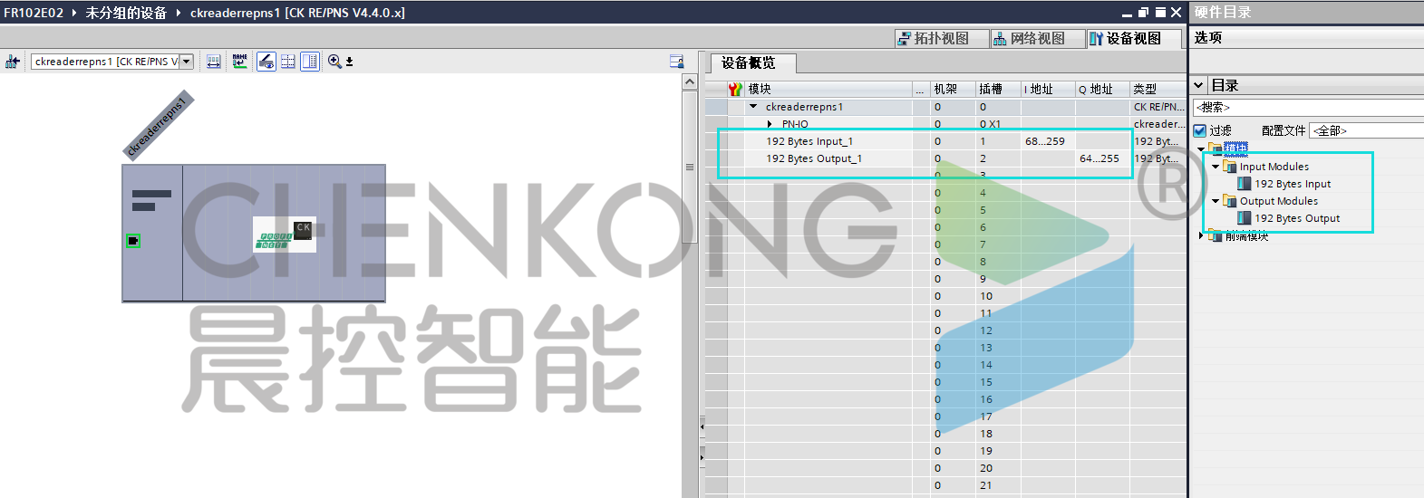 ●在右边硬件目录中添加输入输出各192byte