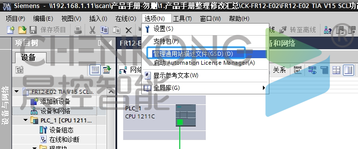 ● 在博图选项中点击“管理通用站描述文件(GSD)”;