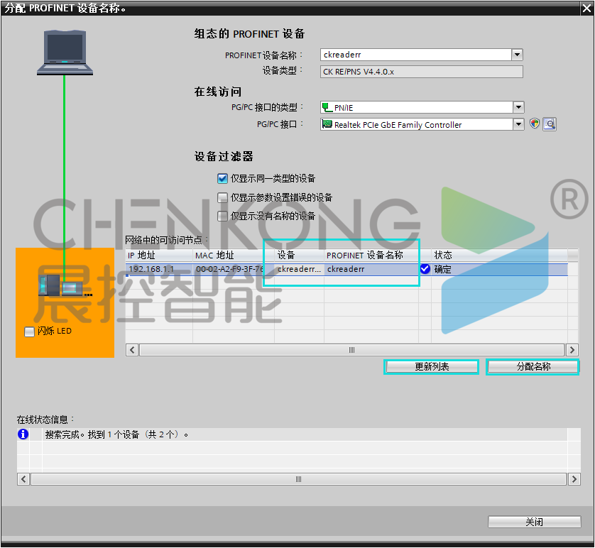 晨控工业rfid读写器CK-FR12系列与西门子PLC配置Profinet通讯连接操作流程