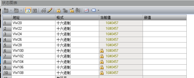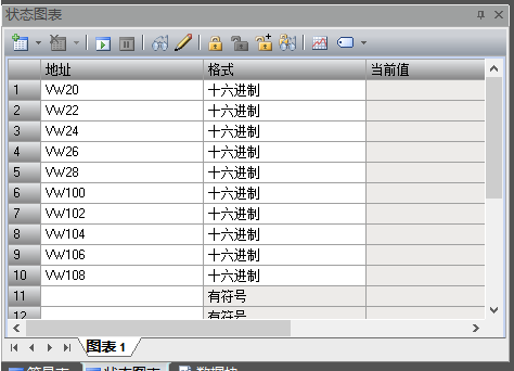 8、把标签放在读卡器感应器内,触发m0.5、m20.0可以进行读写。写之前在状态图表相对应的V存储器填写需要写入数据即可。如下图所示是读写的值。