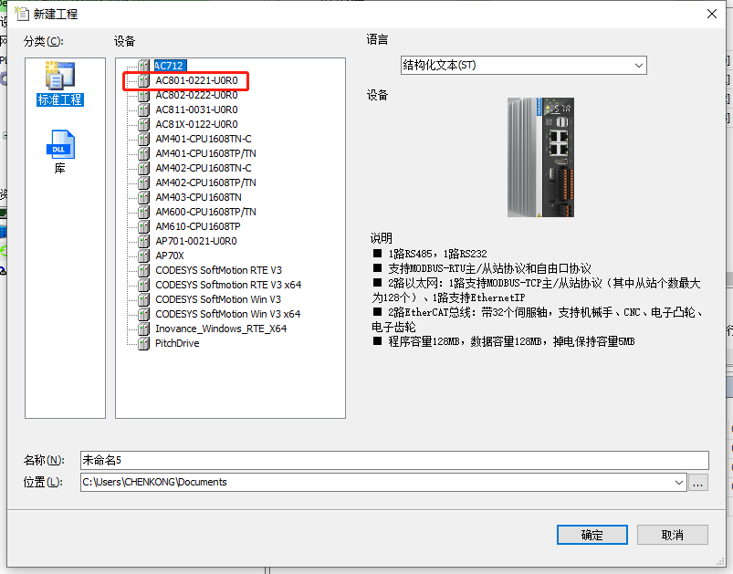 1、新建工程,选择对应的plc型号