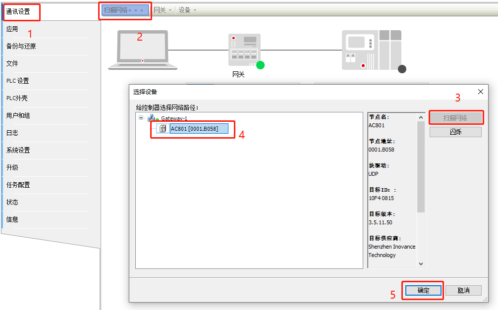 6、点击通讯设置后按如图顺序进行操作