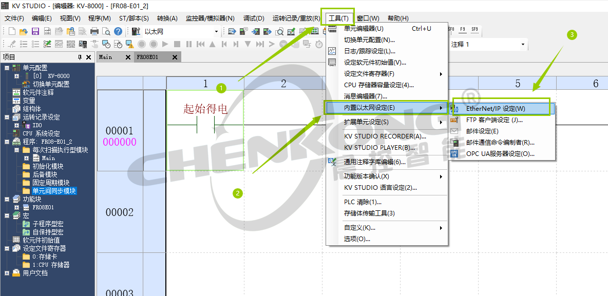 4在“工具”->“内置以太网设定”->“EtherNet/IP 设定”