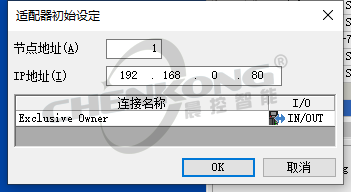 6在右边设备列表中找到添加的EDS文件,双击,设定IP地址(以192.168.0.80为例),点击“OK”,添加至配置中