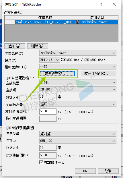 7点击“Exclusive Owner”进入连接设定页面,点击“参数设定”