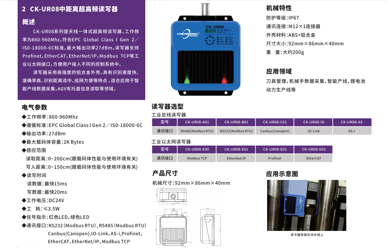 综合现场情况,选择CK-UR08系列读卡器极其配套标签,在镜头分拣处和节点安装CK-UR08读卡器即可满足生产需求。