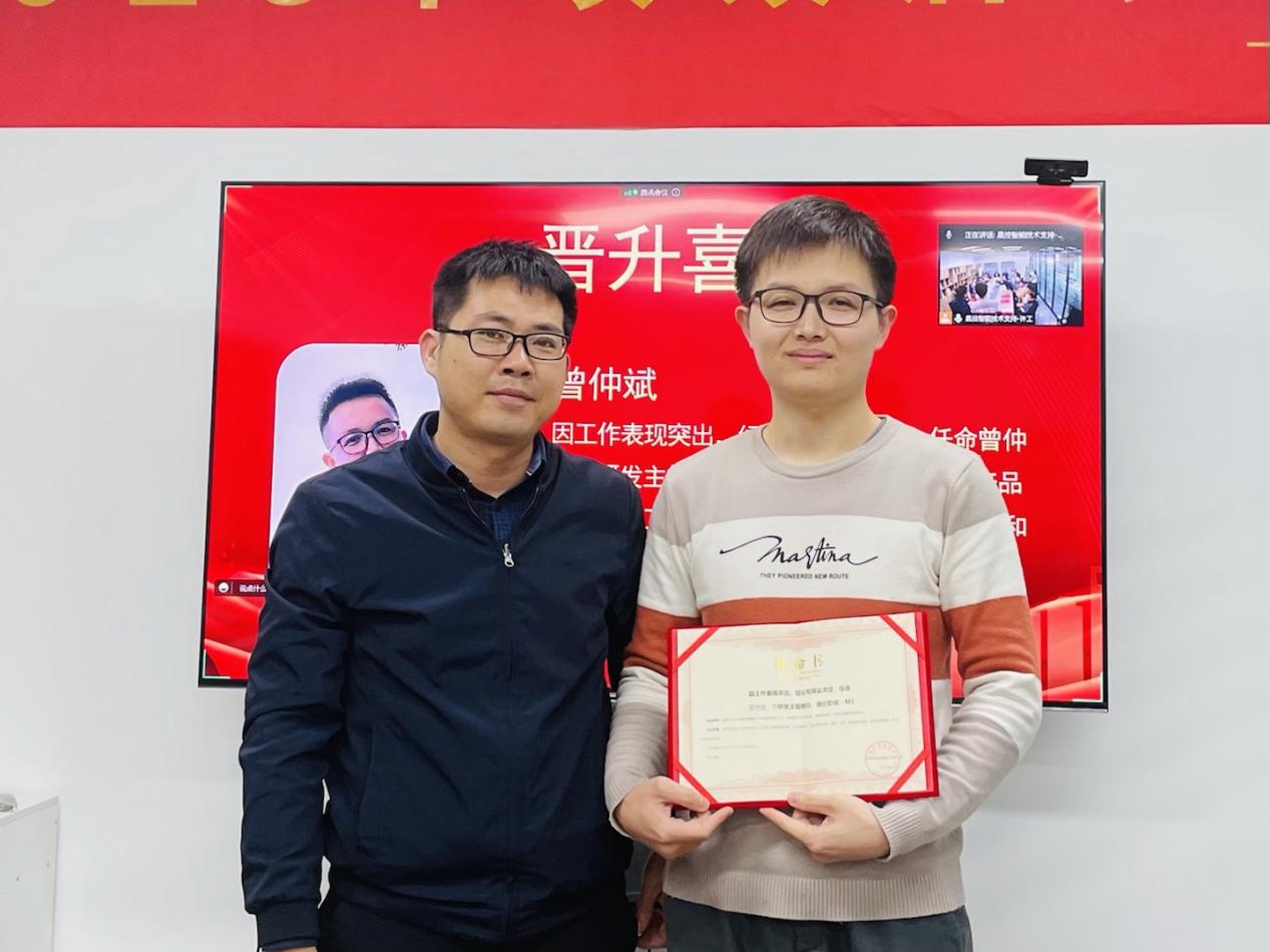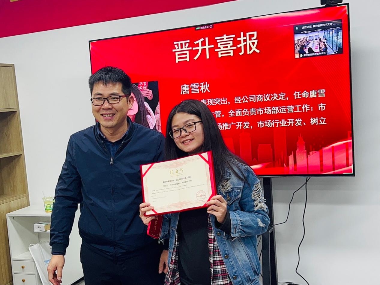 2022年,晨控智能取得的非凡成绩,同时也离不开公司领导团队的正确指导,离不开所有工作人员的辛勤劳动与积极配合,2022年度,公司涌现出一批优秀人才,他们为企业谱写了出彩篇章。为实现各部门之间更高效的配合运转,公司任命曾仲斌、唐雪秋两位工作表现突出的同事晋升各部门主管,祝贺他们。
