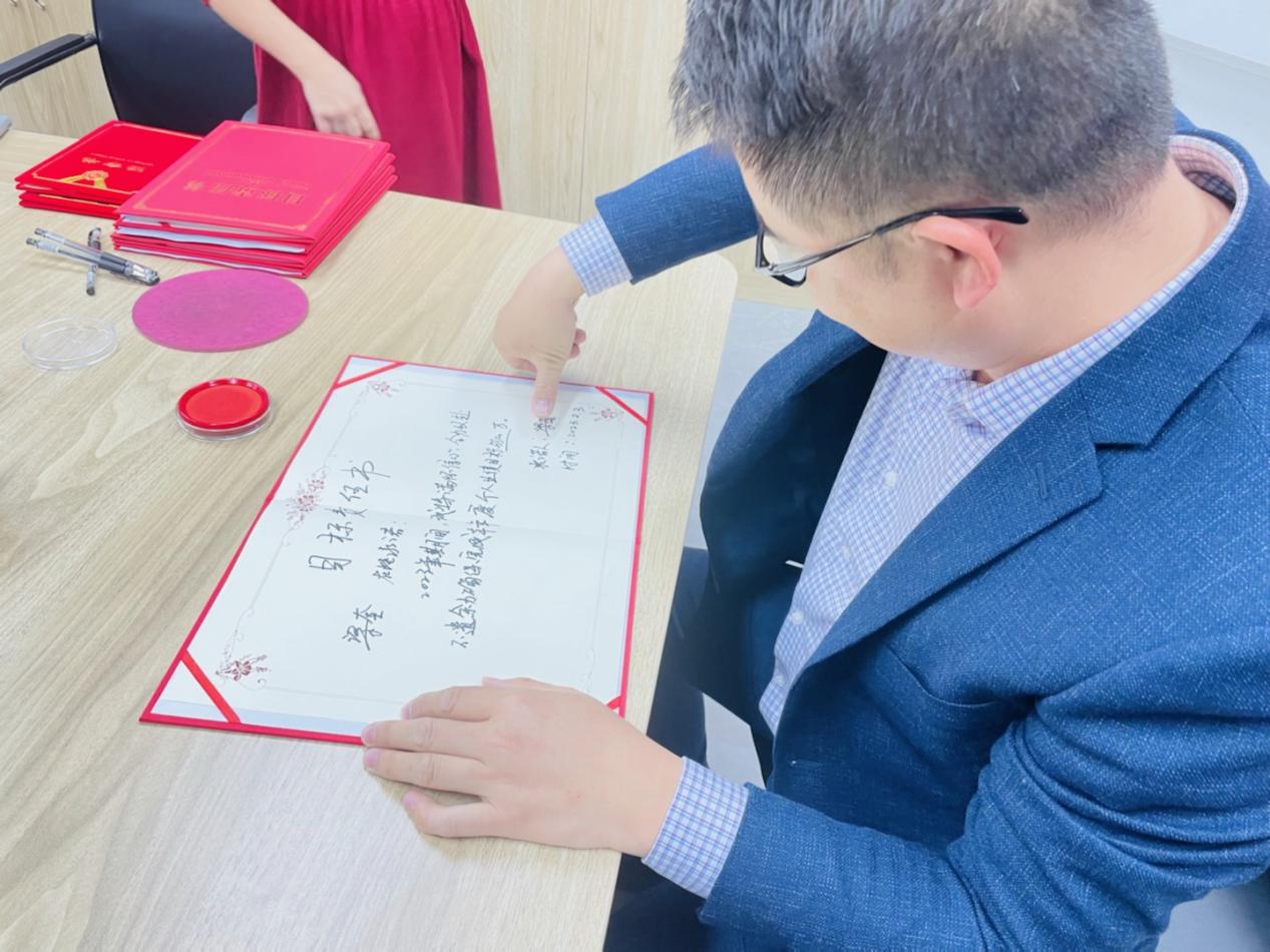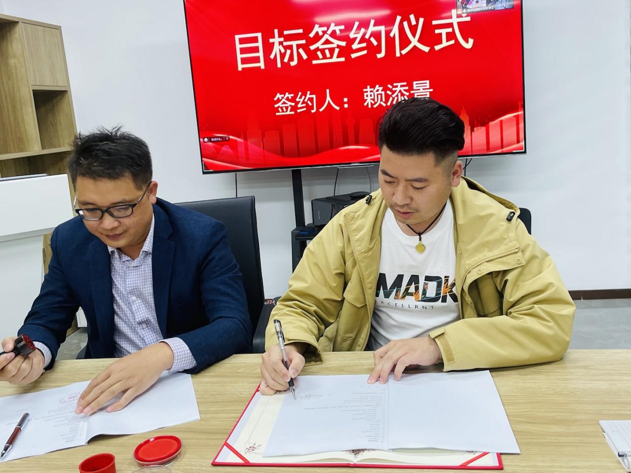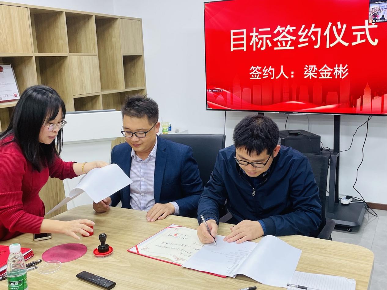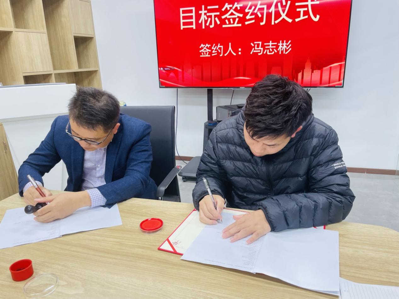 为确保公司2023年度经营目标顺利达成,宣导会上还进行了目标责任书签订仪式。总经理、业务精英、研发部、市场部依次与公司签定了2023年目标责任书,并进行目标宣读,誓将以拼搏的姿态迎接挑战,以坚定的信心向着目标迈进。