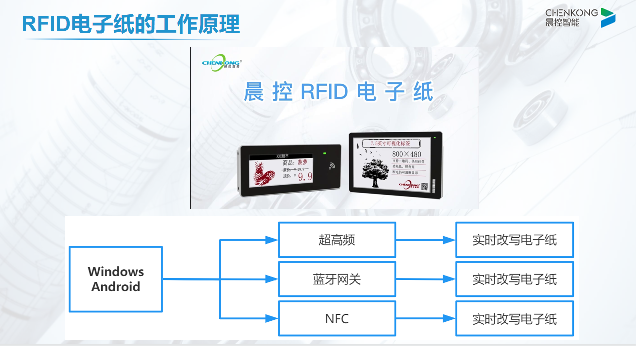 超高频RFID电子纸,是晨控智能面向智能制造、智能物流应用领域推出的无纸化显示解决方案。我们主要的核心价值在于“低碳环保”与“快速改写”。